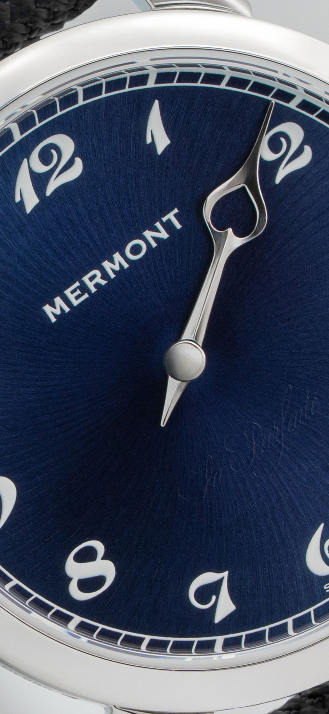 Mermont’s inaugural timepiece, “La Parfaite” (Fr. “the perfect one”) follows the poet’s direction: it focuses on what is truly necessary with its finely crafted “solo hour hand”.